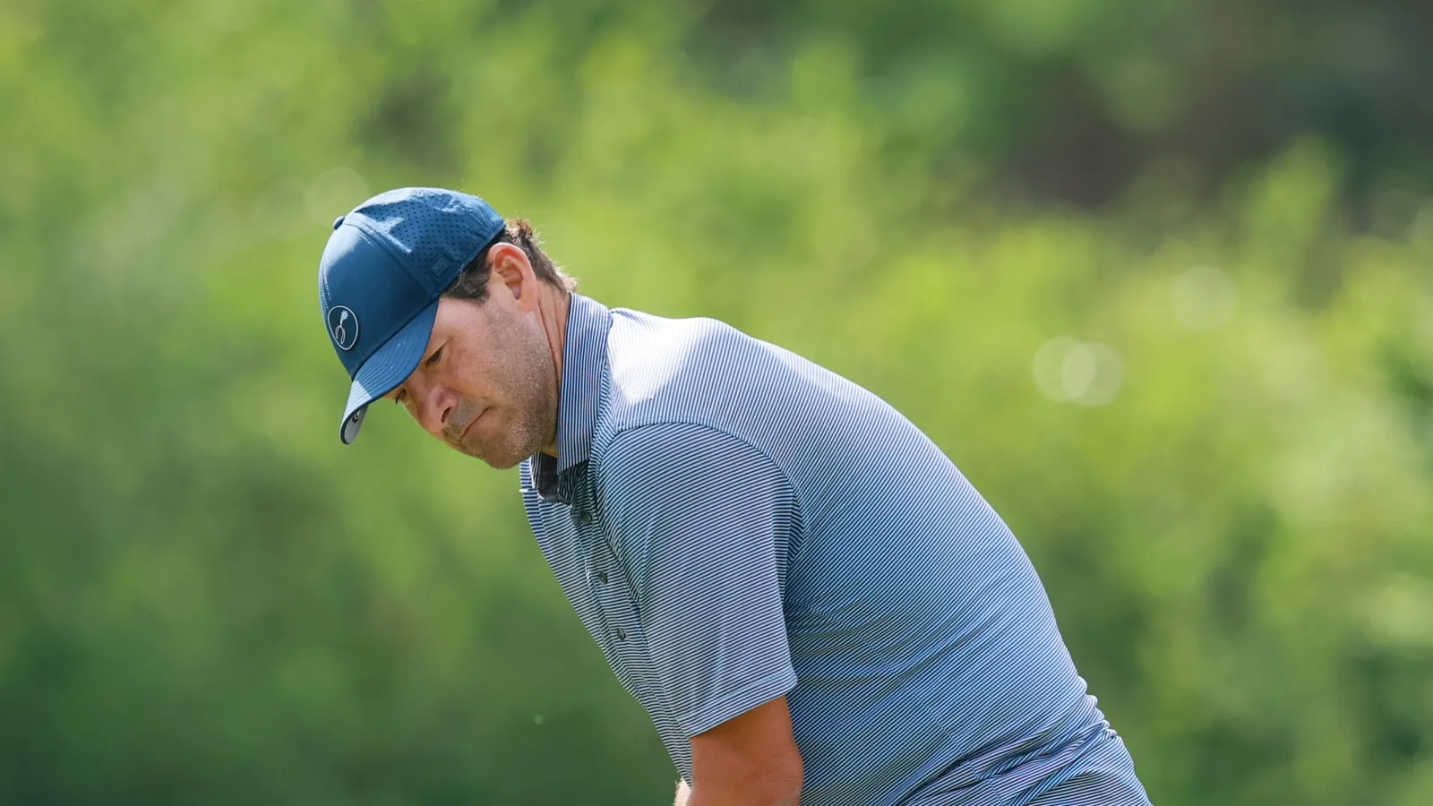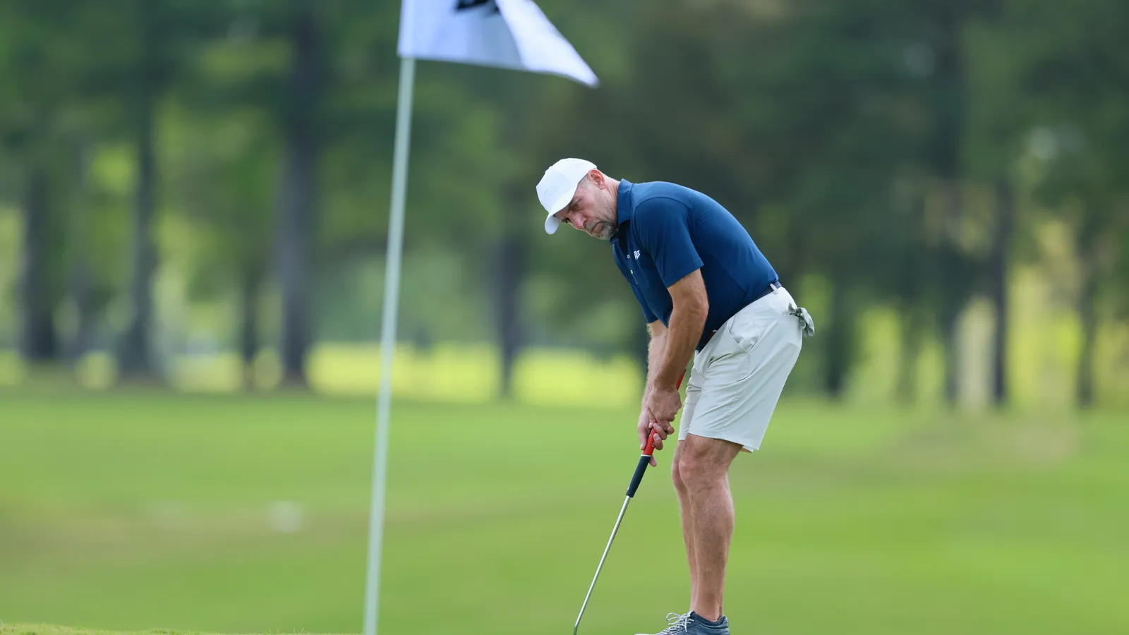 John Smoltz, the playing Commissioner of The PRO Tour, lines up a shot in the first round at Fallen Oak. After the first round, the Commish was tied for second with 41 points.
